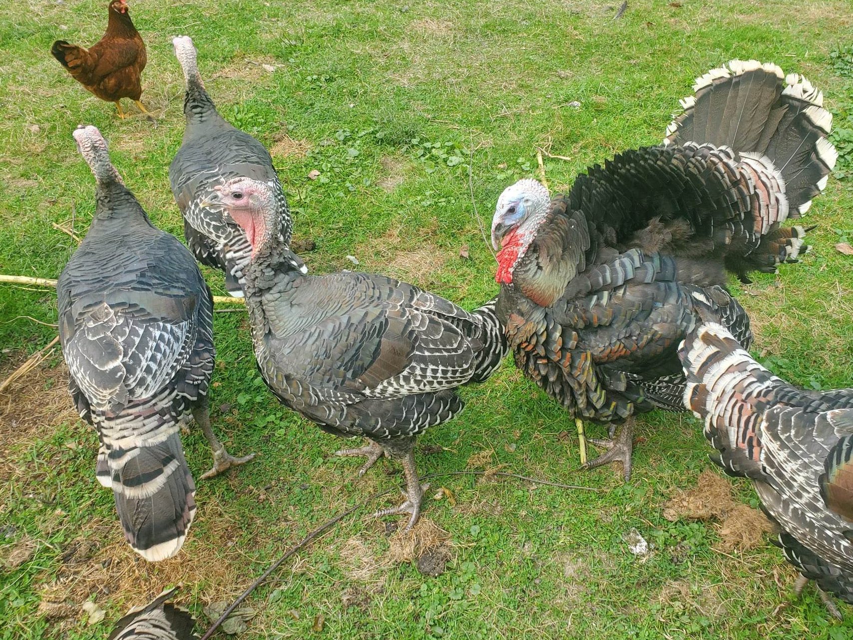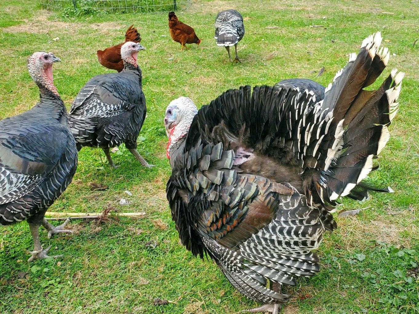 We started off with what we thought were a few Heritage (Standard) Bronze birds, but they rapidly gained weight and we realized that we had been given Broad Breasted Bronze.