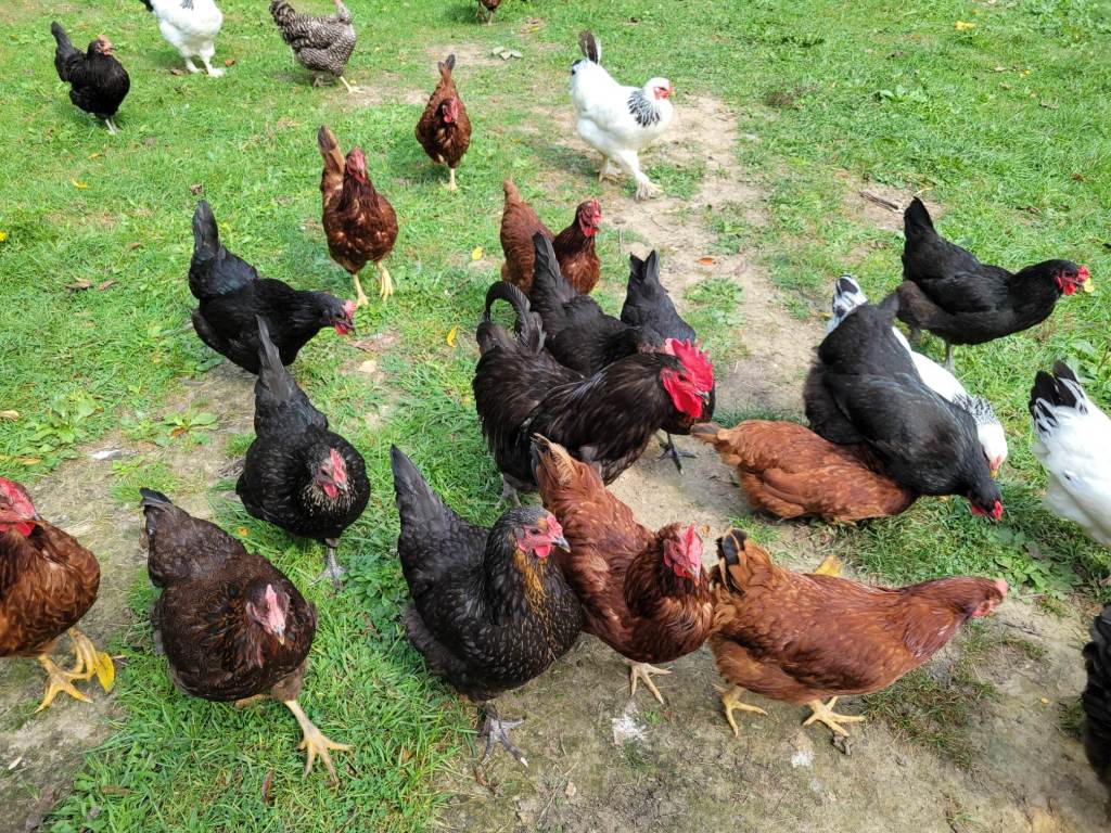 Jersey Giants, Brahmas, Silkies, Turkens, Easter Eggers, Welsummers, Mystic Onyx, Deathlayers, Olive Eggers, and Marans made up our flock until 2021. Then we added Buckeyes, Barred Rocks, Silver Laced Wyandottes, Delawares, Ayam Cemanis, whatever Jeff is, and then we lost track.